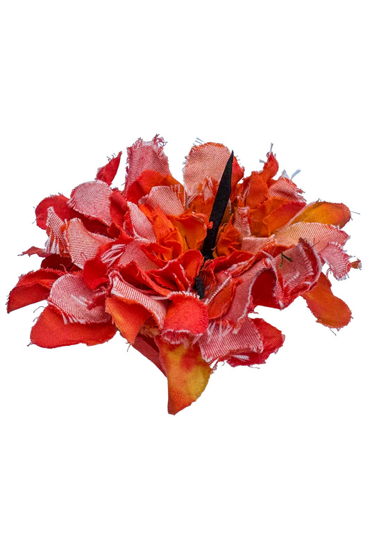 Magnetic Floral Brooch | Cotton | Red Orange