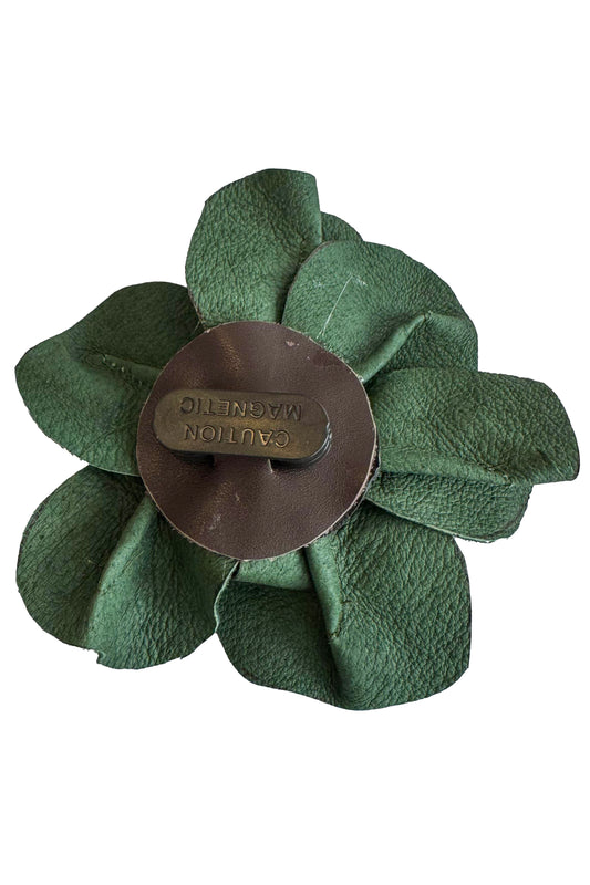 Magnetic Floral Brooch | Camellia | Leather | Green
