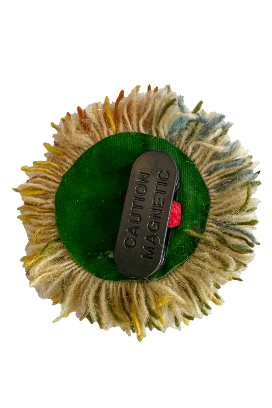 Magnetic Floral Brooch | Fringe | Leather & Wool | Green, Gold & Red