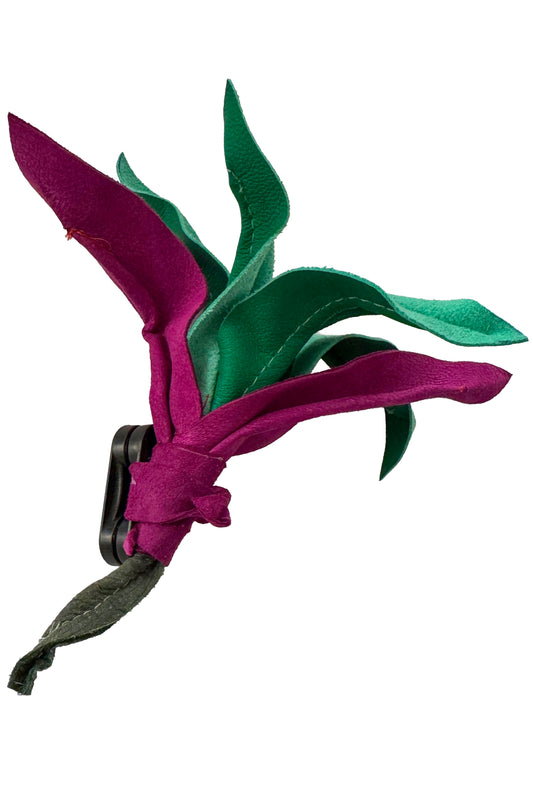 Magnetic Floral Brooch | Orchid | Leather | Magenta & Green