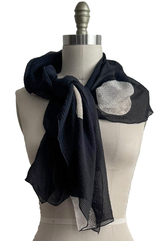 Shawl | Seersucker Silk | Moon Print | Black & Natural