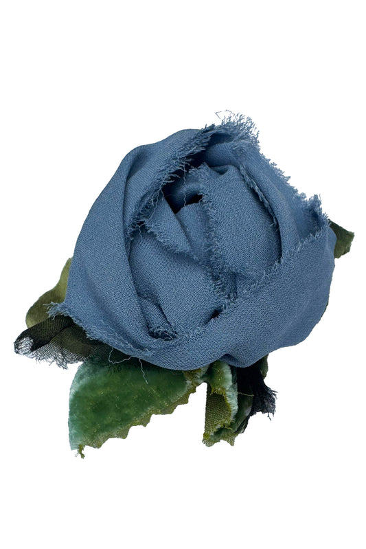 Magnetic Floral Brooch | Rosette | Silk Velvet | Denim Blue