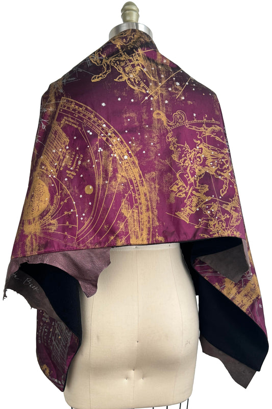 Opera Cape w/ Leather Trim | Silk Taffeta & Cashmere Lining | Celestial Print | Mulberry