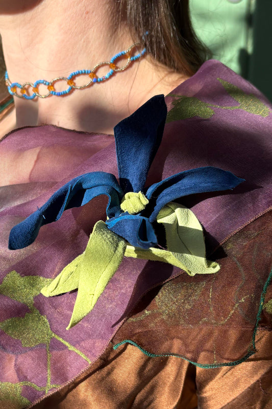 Magnetic Floral Brooch | Orchid | Leather | Blue & Green