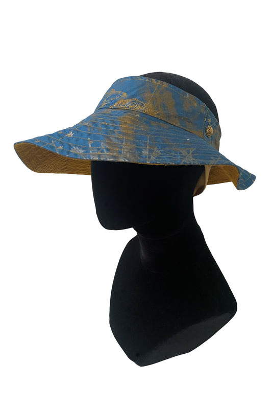 Rimini Visor | Silk Taffeta | Celestial Print | Blue & Gold