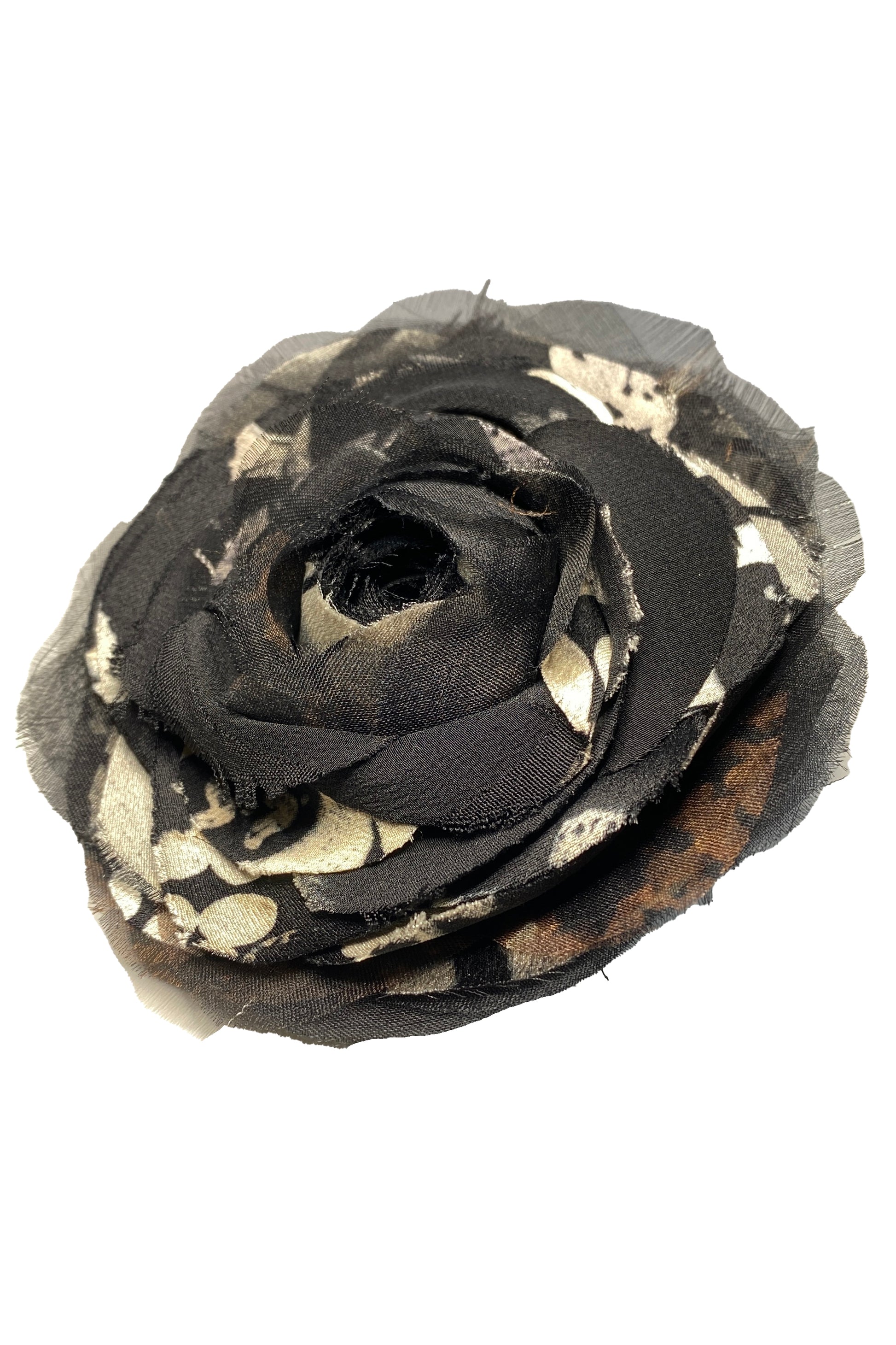 Large silk flower made of upcycled bits from garment production. Wear as a brooch, or shawl closure, or attach to a hat or handbag. Pin Back.