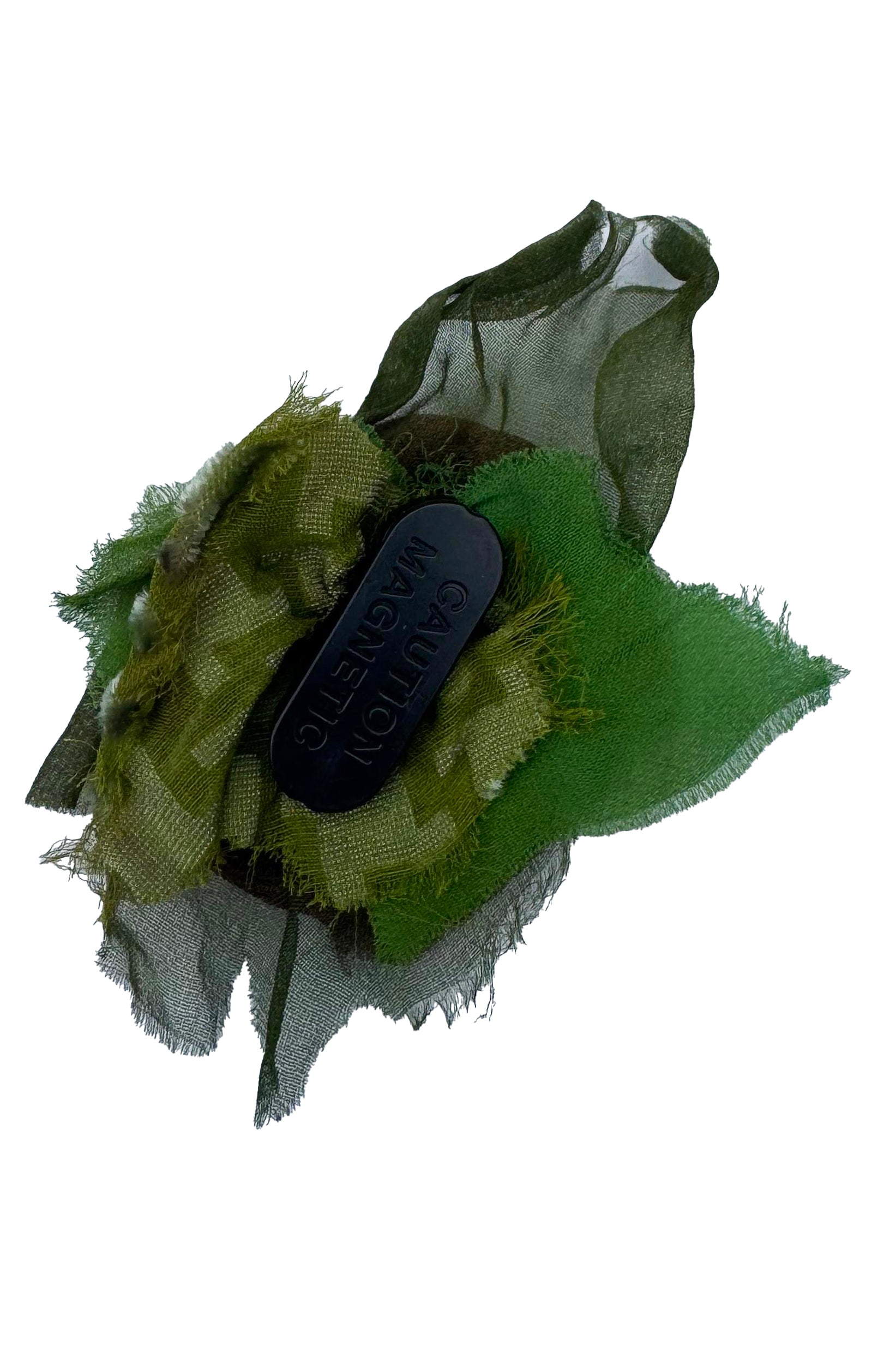 Backed with a strong hidden magnet instead of a pin, they can be worn without damaging your clothes. Add them to jackets, dresses, scarves, hats, or even bags for a playful and textural pop.